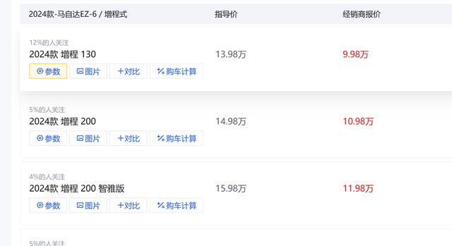 现在是新能源汽车的天下,作为一个国内久负盛名的汽车品牌,当然也会在新能源领域拿出一些成绩,而马自达EZ-6就是具体的表现。首先从定位上看,马自达EZ-6定位中型轿车,具有纯电和增程版可供选择,暂且不说马自达EZ-6的具体参数和性能怎么样,就说一说它的价格吧,综合优惠拉满后,整车的门槛来到了9.98万起,可以说诚意确实拉满。